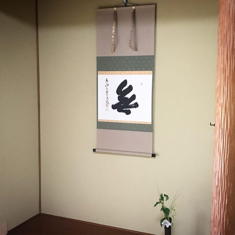 掛軸は主人が来客に対して季節や行事などに応じて最も相応しいものを飾り、おもてなしをする為の道具です。ゲストは飾られている掛軸を見て主人のおもてなしの気持ちを察して心を動かす。決して直接的な言葉や趣向ではなく、日本人らしく静かにさりげなく相手に対しておもてなしのメッセージをおくり、心をかよわせる日本の伝統文化です。