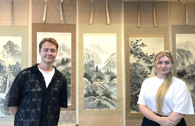 お客様のペースに合わせ、焦らずじっくりと対応させていただきました。接客中、Kristofferさんは掛軸という日本の文化が大切に残されている様子や、日本人ならではの丁寧さ、細やかさなどに感動されていました。このような反応をいただけることは、私たちにとって大きな励みとなります。