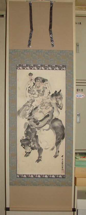 掛軸は主人が来客に対して季節や行事などに応じて最も相応しいものを飾り、おもてなしをする為の道具です。ゲストは飾られている掛軸を見て主人のおもてなしの気持ちを察して心を動かす。決して直接的な言葉や趣向ではなく、日本人らしく静かにさりげなく相手に対しておもてなしのメッセージをおくり、心をかよわせる日本の伝統文化です。