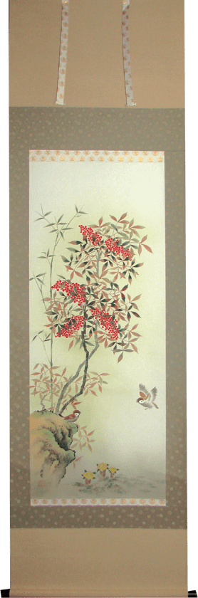 掛軸は主人が来客に対して季節や行事などに応じて最も相応しいものを飾り、おもてなしをする為の道具です。ゲストは飾られている掛軸を見て主人のおもてなしの気持ちを察して心を動かす。決して直接的な言葉や趣向ではなく、日本人らしく静かにさりげなく相手に対しておもてなしのメッセージをおくり、心をかよわせる日本の伝統文化です。
