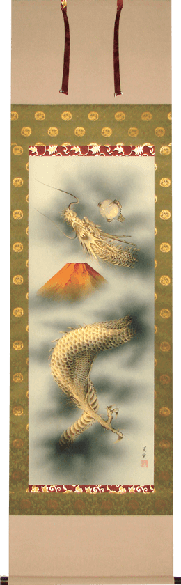 掛軸は主人が来客に対して季節や行事などに応じて最も相応しいものを飾り、おもてなしをする為の道具です。ゲストは飾られている掛軸を見て主人のおもてなしの気持ちを察して心を動かす。決して直接的な言葉や趣向ではなく、日本人らしく静かにさりげなく相手に対しておもてなしのメッセージをおくり、心をかよわせる日本の伝統文化です。