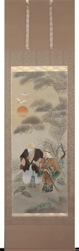 掛軸は主人が来客に対して季節や行事などに応じて最も相応しいものを飾り、おもてなしをする為の道具です。ゲストは飾られている掛軸を見て主人のおもてなしの気持ちを察して心を動かす。決して直接的な言葉や趣向ではなく、日本人らしく静かにさりげなく相手に対しておもてなしのメッセージをおくり、心をかよわせる日本の伝統文化です。