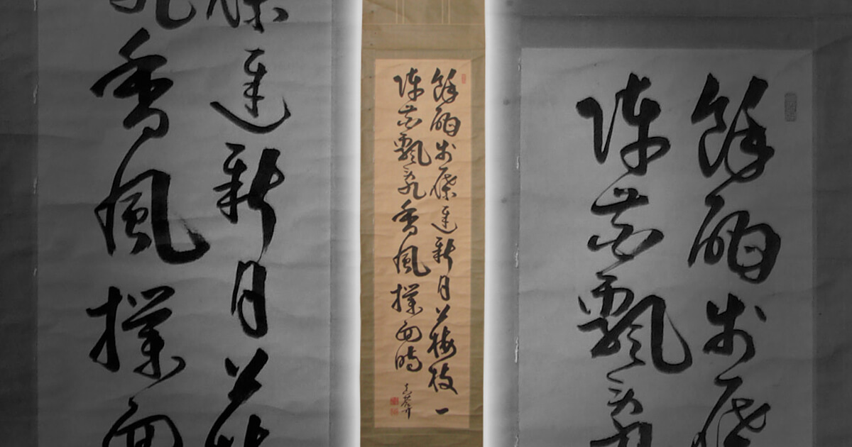 掛軸は主人が来客に対して季節や行事などに応じて最も相応しいものを飾り、おもてなしをする為の道具です。ゲストは飾られている掛軸を見て主人のおもてなしの気持ちを察して心を動かす。決して直接的な言葉や趣向ではなく、日本人らしく静かにさりげなく相手に対しておもてなしのメッセージをおくり、心をかよわせる日本の伝統文化です。