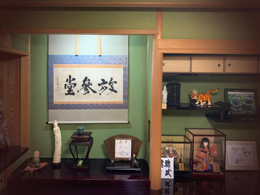 掛軸は主人が来客に対して季節や行事などに応じて最も相応しいものを飾り、おもてなしをする為の道具です。ゲストは飾られている掛軸を見て主人のおもてなしの気持ちを察して心を動かす。決して直接的な言葉や趣向ではなく、日本人らしく静かにさりげなく相手に対しておもてなしのメッセージをおくり、心をかよわせる日本の伝統文化です。