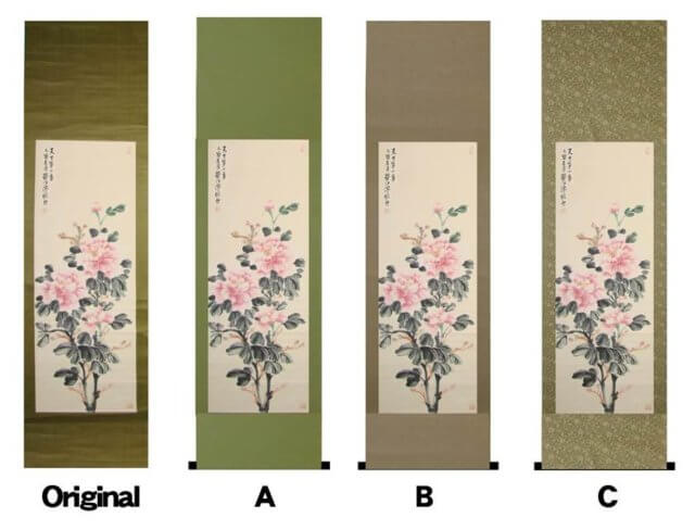 アメリカ 掛軸 牡丹 修理 005