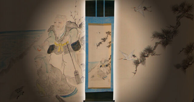 掛軸は主人が来客に対して季節や行事などに応じて最も相応しいものを飾り、おもてなしをする為の道具です。ゲストは飾られている掛軸を見て主人のおもてなしの気持ちを察して心を動かす。決して直接的な言葉や趣向ではなく、日本人らしく静かにさりげなく相手に対しておもてなしのメッセージをおくり、心をかよわせる日本の伝統文化です。