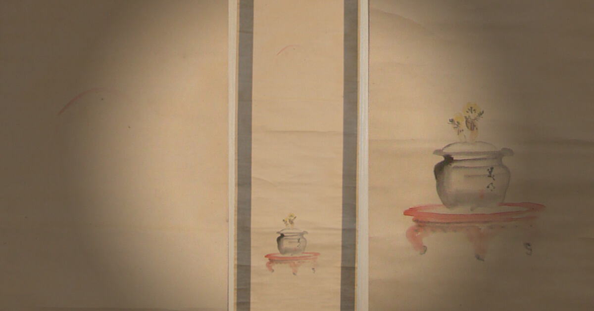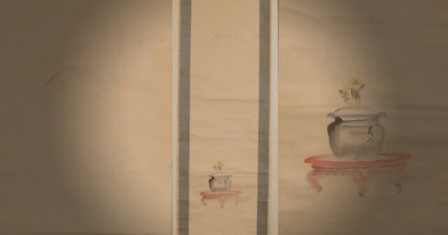 掛軸は主人が来客に対して季節や行事などに応じて最も相応しいものを飾り、おもてなしをする為の道具です。ゲストは飾られている掛軸を見て主人のおもてなしの気持ちを察して心を動かす。決して直接的な言葉や趣向ではなく、日本人らしく静かにさりげなく相手に対しておもてなしのメッセージをおくり、心をかよわせる日本の伝統文化です。