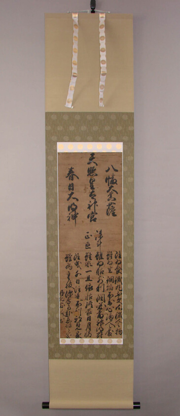掛軸は主人が来客に対して季節や行事などに応じて最も相応しいものを飾り、おもてなしをする為の道具です。ゲストは飾られている掛軸を見て主人のおもてなしの気持ちを察して心を動かす。決して直接的な言葉や趣向ではなく、日本人らしく静かにさりげなく相手に対しておもてなしのメッセージをおくり、心をかよわせる日本の伝統文化です。