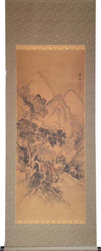 掛軸は主人が来客に対して季節や行事などに応じて最も相応しいものを飾り、おもてなしをする為の道具です。ゲストは飾られている掛軸を見て主人のおもてなしの気持ちを察して心を動かす。決して直接的な言葉や趣向ではなく、日本人らしく静かにさりげなく相手に対しておもてなしのメッセージをおくり、心をかよわせる日本の伝統文化です。