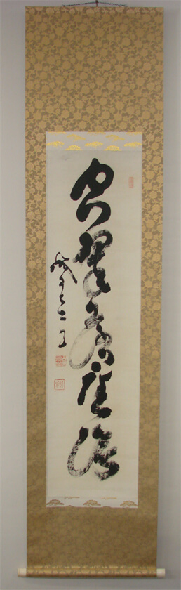 掛軸は主人が来客に対して季節や行事などに応じて最も相応しいものを飾り、おもてなしをする為の道具です。ゲストは飾られている掛軸を見て主人のおもてなしの気持ちを察して心を動かす。決して直接的な言葉や趣向ではなく、日本人らしく静かにさりげなく相手に対しておもてなしのメッセージをおくり、心をかよわせる日本の伝統文化です。