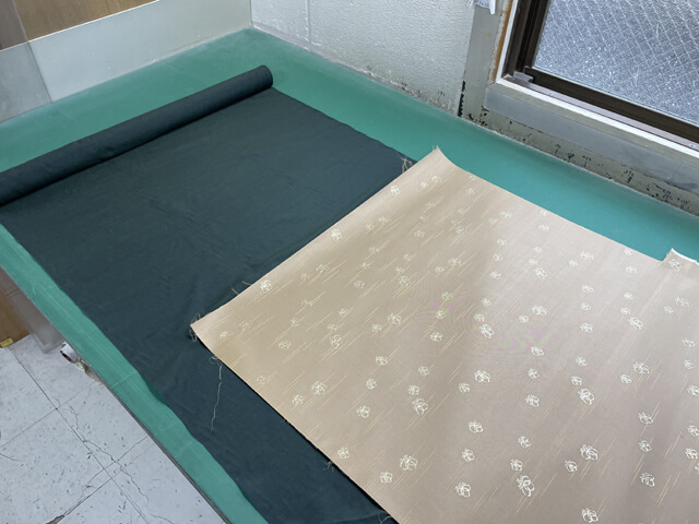 お客様と裂地や仕様の打ち合わせを行い、今回はこちらの裂地の組み合わせで仕立替を行う事が決定いたしました。