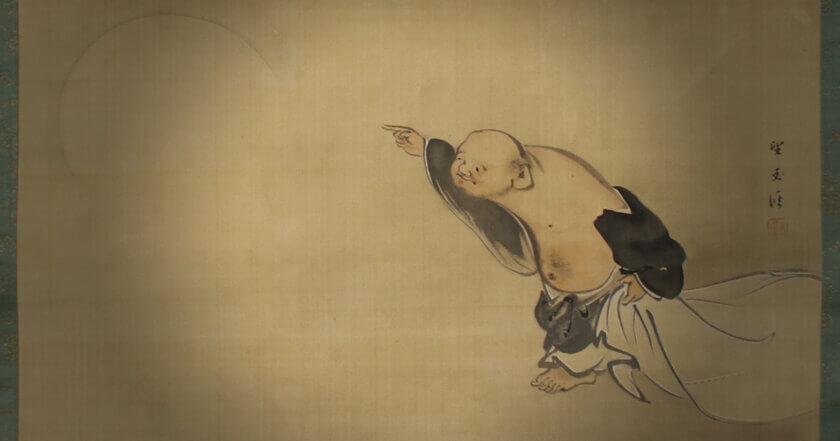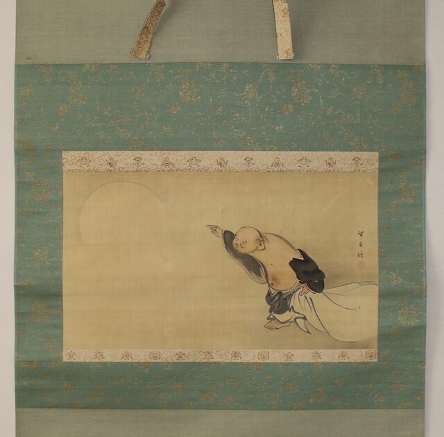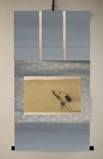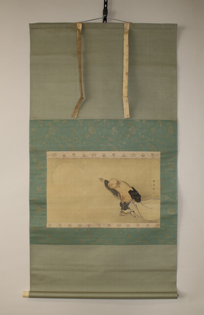 こちらがご相談いただいていた掛軸です。可愛らしい布袋さんが水墨で描かれている作品です。