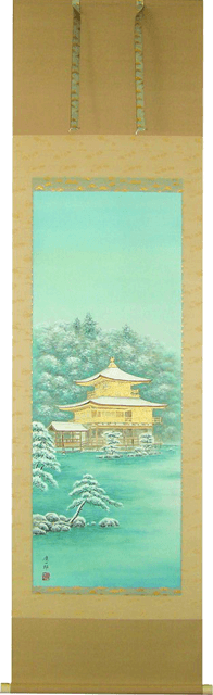 実はお客様が来店前に問い合わせして売り切れになっていた掛軸も、これとは別の金閣寺雪景の掛軸だったので、同じ画題の作品にこうして巡り会えたことに大変喜ばれておられました。