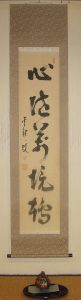 掛軸は主人が来客に対して季節や行事などに応じて最も相応しいものを飾り、おもてなしをする為の道具です。ゲストは飾られている掛軸を見て主人のおもてなしの気持ちを察して心を動かす。決して直接的な言葉や趣向ではなく、日本人らしく静かにさりげなく相手に対しておもてなしのメッセージをおくり、心をかよわせる日本の伝統文化です。