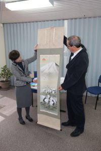 掛軸は主人が来客に対して季節や行事などに応じて最も相応しいものを飾り、おもてなしをする為の道具です。ゲストは飾られている掛軸を見て主人のおもてなしの気持ちを察して心を動かす。決して直接的な言葉や趣向ではなく、日本人らしく静かにさりげなく相手に対しておもてなしのメッセージをおくり、心をかよわせる日本の伝統文化です。