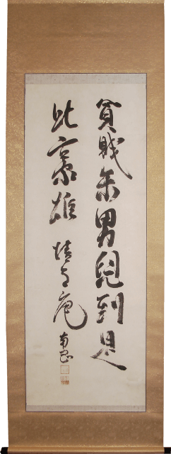 掛軸は主人が来客に対して季節や行事などに応じて最も相応しいものを飾り、おもてなしをする為の道具です。ゲストは飾られている掛軸を見て主人のおもてなしの気持ちを察して心を動かす。決して直接的な言葉や趣向ではなく、日本人らしく静かにさりげなく相手に対しておもてなしのメッセージをおくり、心をかよわせる日本の伝統文化です。