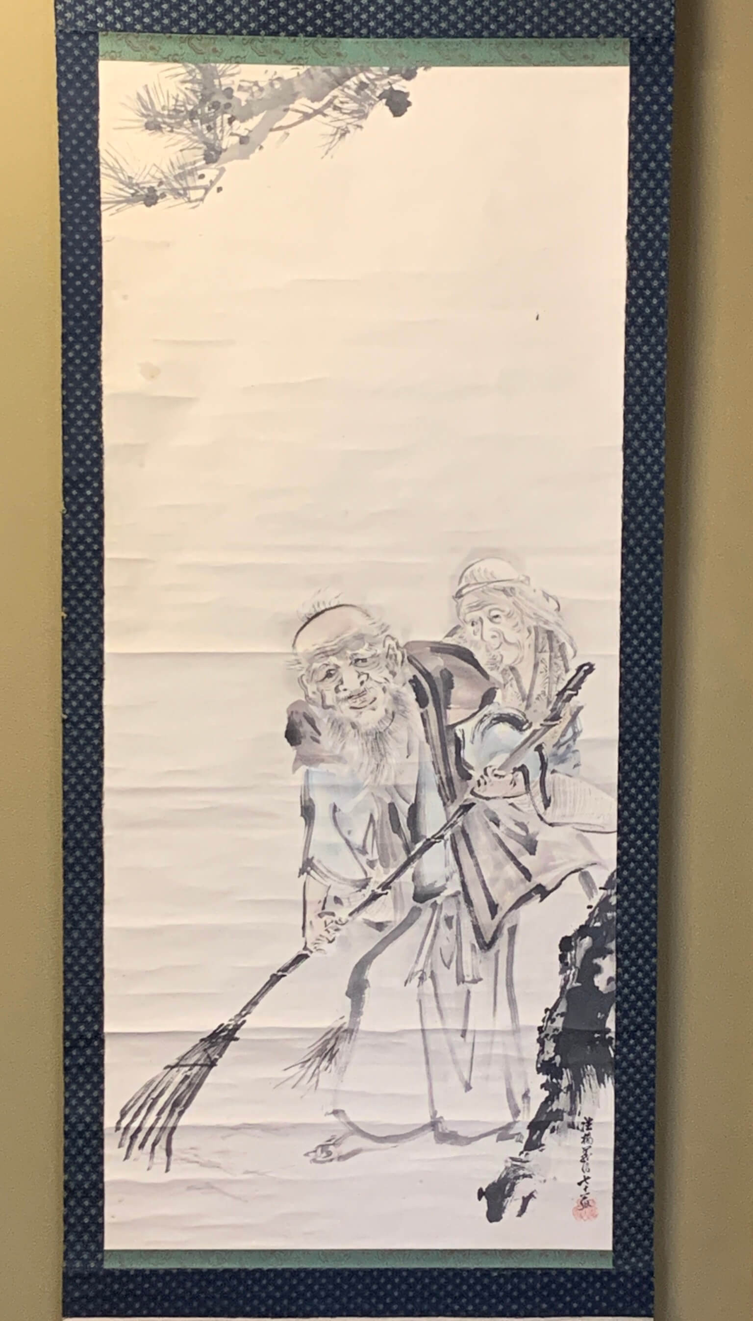 掛軸は主人が来客に対して季節や行事などに応じて最も相応しいものを飾り、おもてなしをする為の道具です。ゲストは飾られている掛軸を見て主人のおもてなしの気持ちを察して心を動かす。決して直接的な言葉や趣向ではなく、日本人らしく静かにさりげなく相手に対しておもてなしのメッセージをおくり、心をかよわせる日本の伝統文化です。