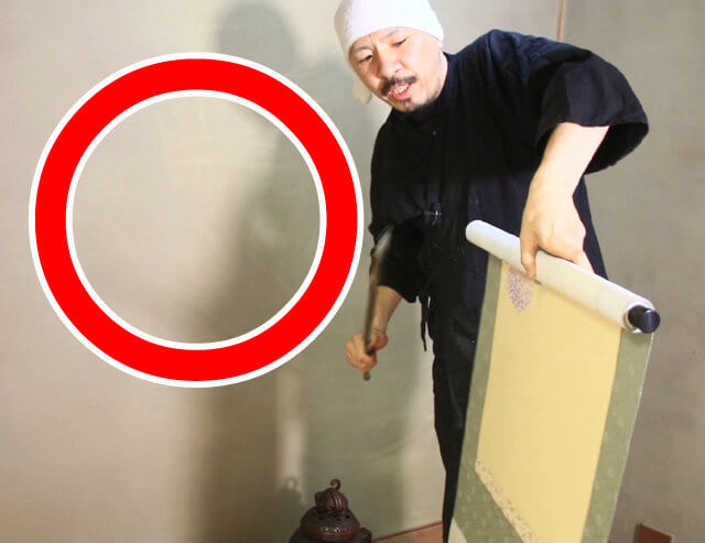 掛軸は主人が来客に対して季節や行事などに応じて最も相応しいものを飾り、おもてなしをする為の道具です。ゲストは飾られている掛軸を見て主人のおもてなしの気持ちを察して心を動かす。決して直接的な言葉や趣向ではなく、日本人らしく静かにさりげなく相手に対しておもてなしのメッセージをおくり、心をかよわせる日本の伝統文化です。