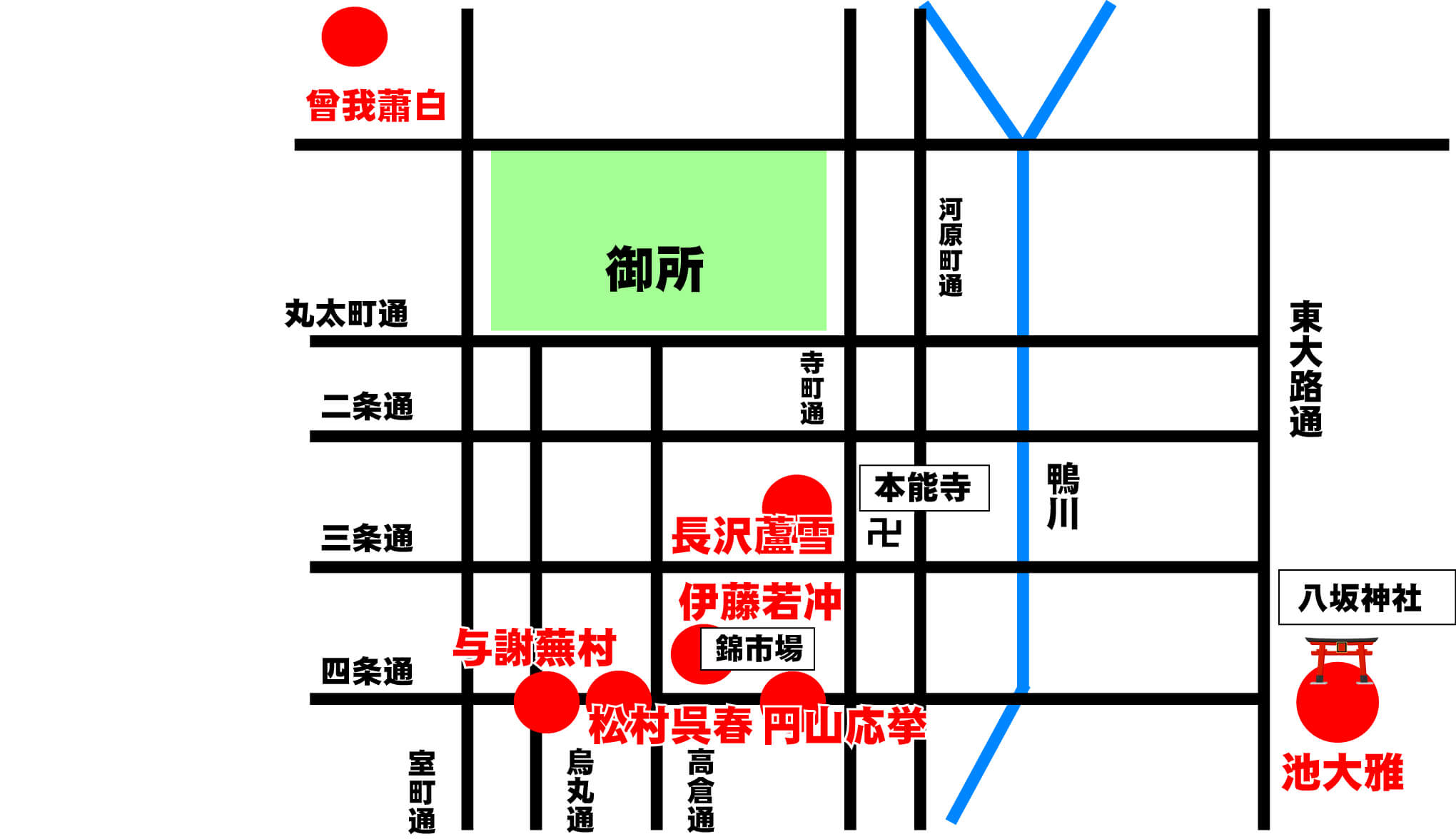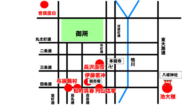 18世紀京都画壇地図 横